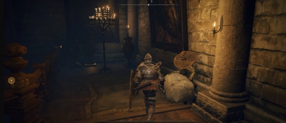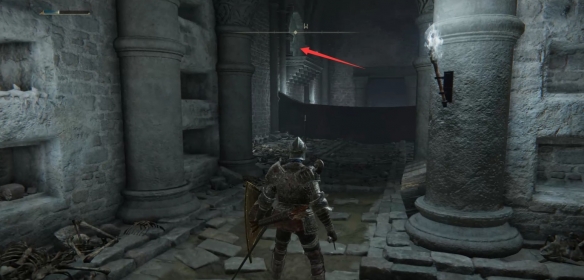 下圖直走到頭,砍一下牆會發現隱藏門。進去擊敗黑刀刺客(門口可以召喚D幫你打),得到護符染藍兇刀、黑刀烙印。