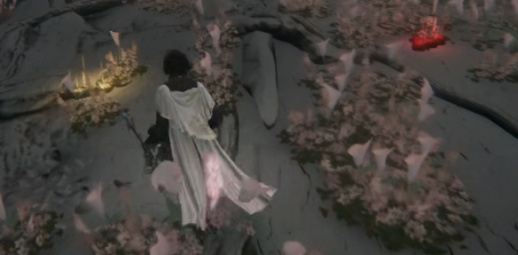 12.下圖位置返回之前的猩紅沼澤,對面池塘中有一個腐敗樹靈,擊敗樹靈後坐賜福刷新地圖,對面坡上會有兩個符