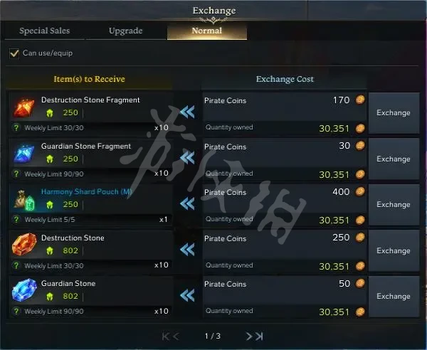 商船的兌換材料是海盜幣,可以通過島嶼日常,跑島來獲得海盜幣,或者通過別的硬幣兌換,我的建議是每周除了經驗藥水全部搬空
