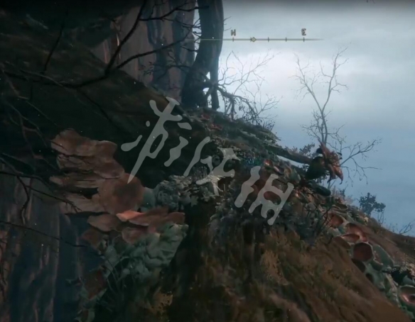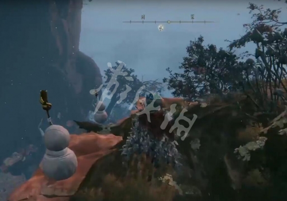 在下圖的位置跳到下方的樹枝上後繼續向東北方向走。