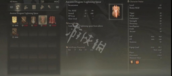 獲取方法:在拿到古龍禱告書之後交給米利耶,即可花費8500盧恩購買古龍雷槍禱告。
