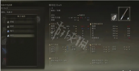 圖中以打刀為例,可以看到寒冷屬性的加成。