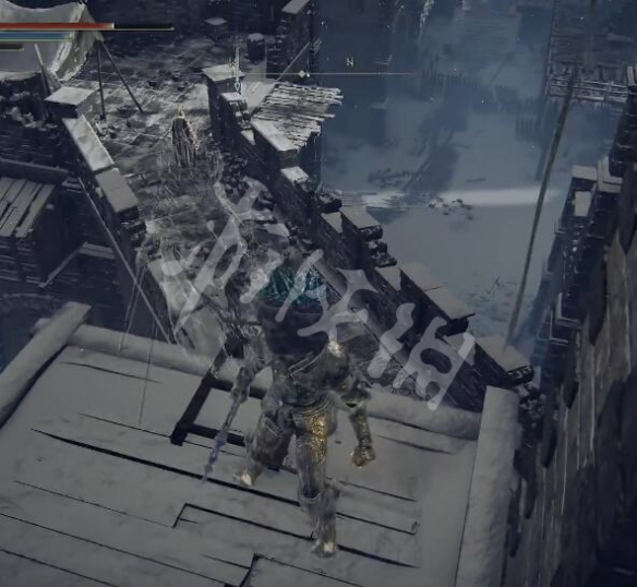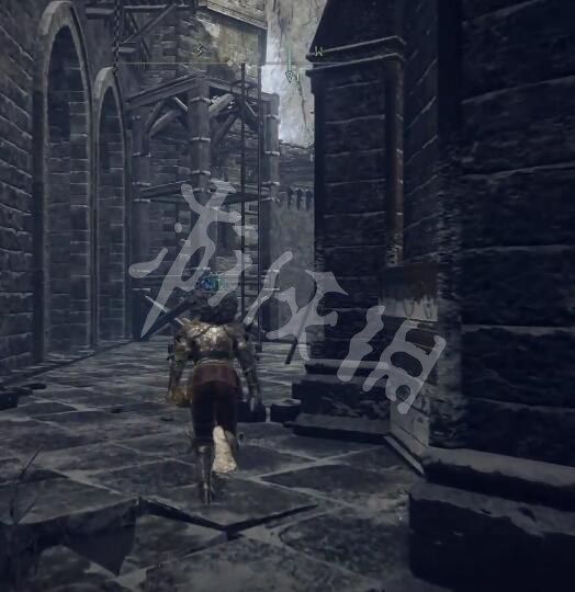 爬上梯子後向西方前進,來到圖中位置向下跳。