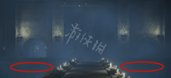 我們來到漂流墓地,大家可以看到在下圖中有一片迷霧區域,紅圈處需要使用2把石劍鑰匙方可進入,裡面叫做邊境英雄墓地,可以在一開始環節選擇石劍鑰匙遺物,也可在外拾取或購買石劍鑰匙後返回此地。