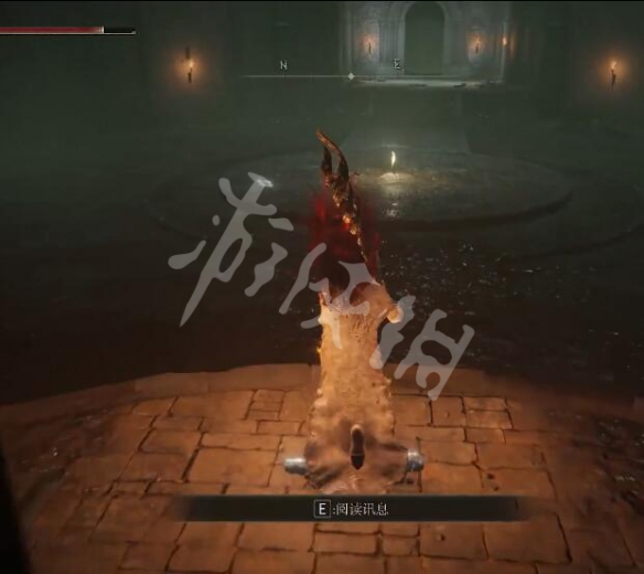 乘坐機關來到底層後,會有一個賜福點和一個房間,進入BOSS房間後有一個寶箱,寶箱里放著黃金樹的恩惠+1。