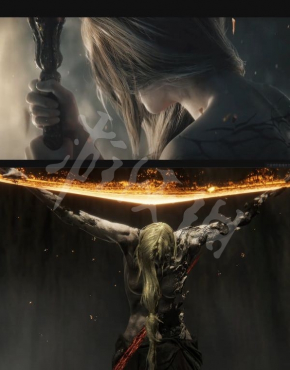 2019預告瑪麗卡的裂痕、游戲內身軀的破碎狀,除了象徵瑪麗卡作為法環容器破裂也能視為"石膚"血統的表現。