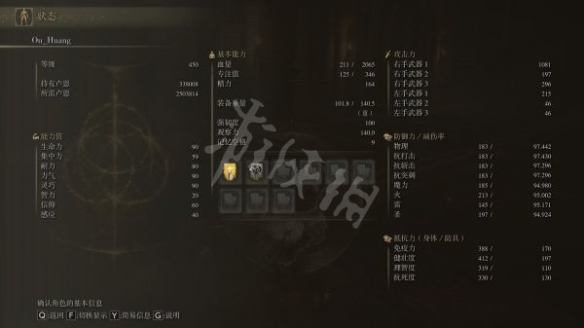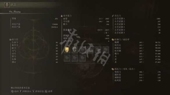 這應該是目前能達到的極限防禦了吧98全屬性防禦,女武神姐姐別颳了,具體通過山羊套+黑炎護體+老將旗+忍耐+黃金樹立誓(好像和老將旗衝突)+藍羽七刃劍(觸發)+龍輝大盾護符+這套靈藥瓶。