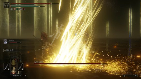 艾爾登之獸是游戲最終Boss(花樣游泳選手),緊跟在拉達岡的戰斗後面,換句話說最後是一場二連Boss戰,對玩家的藥品消耗和節奏轉換是一個考驗。