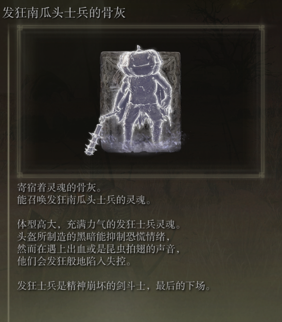 老頭環發狂南瓜頭士兵骨灰在哪?發狂南瓜頭士兵骨灰是法師玩家非常喜歡的骨灰之一,非常肉可以穩定吸收怪物的仇恨。下面小編就帶來艾爾登法環發狂南瓜頭士兵骨灰位置介紹,一起來看看吧。