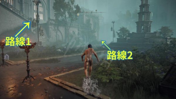 2.走出討論室之後,會有兩個路線可以到之後的屋頂區,我這邊是走路線2(如果是第一次通關,路線2的門應該是關的,大家要先走路線1把門打開才行)。