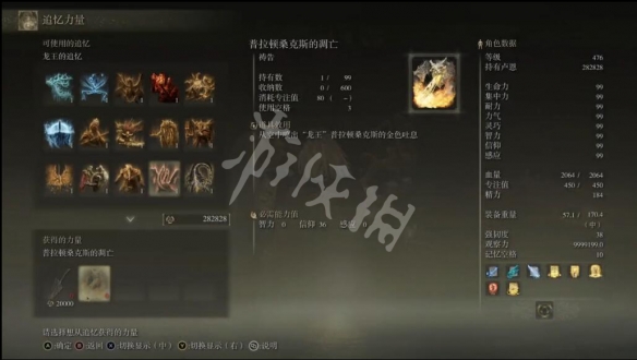 獲取方法:在進入隱藏BOSS房後,擊殺龍王普拉頓桑克斯後獲得龍王的追憶,再來到大賜福的解指恩雅處進行兌換,可換得普拉頓桑克斯的凋亡以及龍王岩劍。
