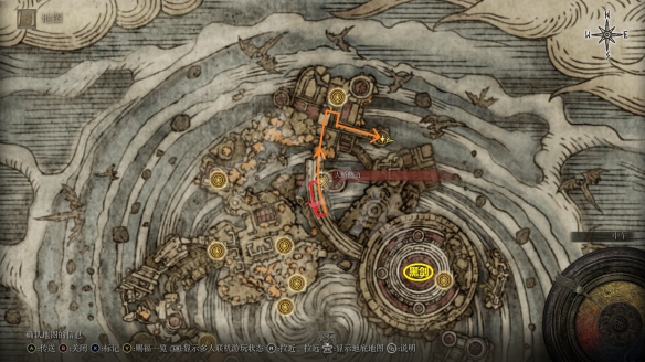從逐漸崩壞的法姆·亞茲拉的大橋側的賜福出發,上到大橋後往黑劍的反方向走。