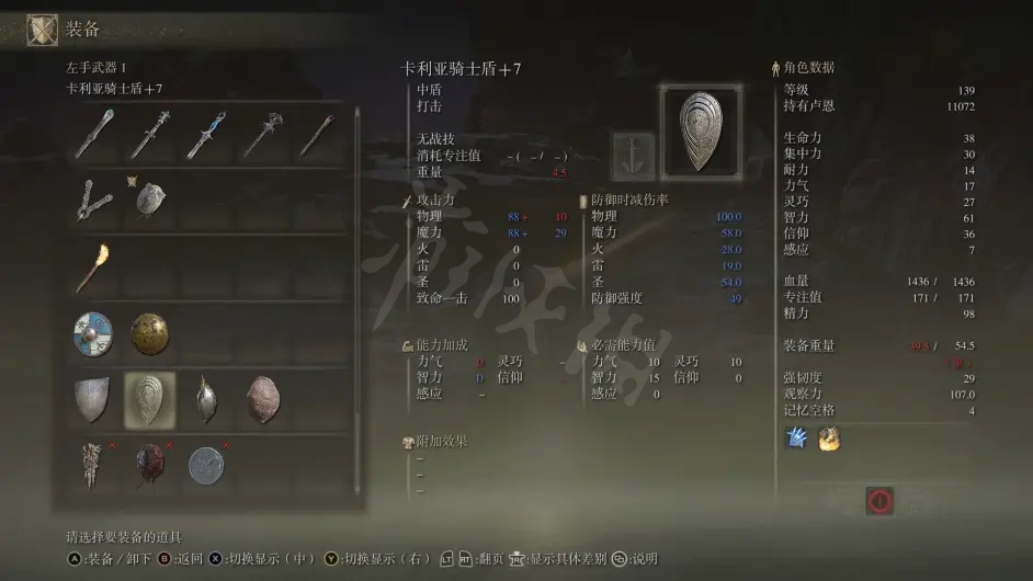 通關時面板智力60,信仰24,而且沒有吃任何的BUFF(戰灰決心和軍旗)單次吃滿的傷害能打4000以上,而且對於大型BOSS甚至可以打出硬直。但是這個武器要注意耐力的消耗,處於架勢形態(准備釋放技能)時,耐力回復會減慢。