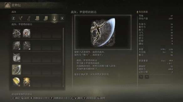 獲取方法:找到並擊殺禁衛騎士羅蕾塔即可獲取羅蕾塔的斬擊戰灰。