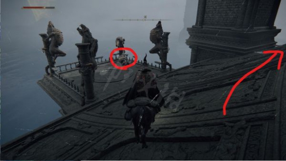 之後跳到神廟本體屋頂結構,就要開始騎馬,先往外面的橫柱用馬2段跳,接下來就可以一路往下慢慢跳。
