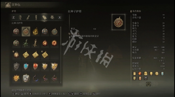 獲取方法:在尊貴者的英雄墓地中的需要石劍鑰匙的房間屍體上存放著紅種子護符。