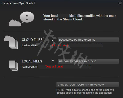 具體表現為啟動游戲時,出現以下錯誤消息:“您的本地 ELDEN RING 文件與存儲在 Steam 雲中的文件衝突。” 這時我們需要檢查每次保存的日期和時間,然後選擇要保留的已保存數據並完成同步。