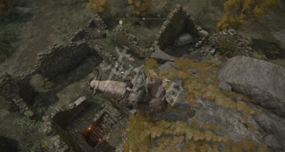 驛站街遺跡往南,圖中白圈位置,也就是獲取權貴上衣的位置。