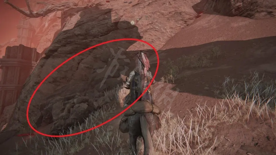 第一步:首先我們需要找到上圖所示的位置,腐敗病教堂下面,大概在格威的破屋右下角。如果你看到了山壁上的信息和烈士們的血跡,說明你找的地方是正確的。