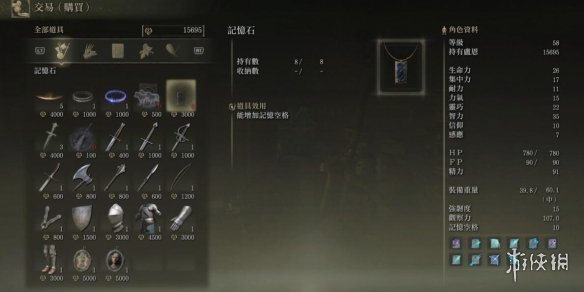 記憶石是可以讓你多放魔法和禱告的道具,初始是兩格,如果8個記憶石都拿到就可以塞到10格魔法,對於玩魔法和禱告的玩家是非常需要的。