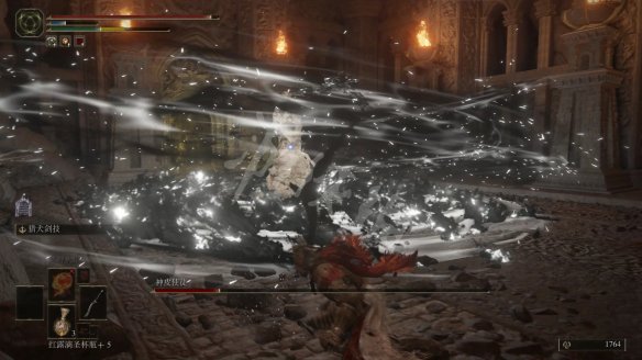 戰鬥分兩個階段,1階段有火球和武器攻擊兩種,其中火球術大概率會在兩人拉開一定距離以及你喝葯的時候釋放,武器技能屬於常規的變速組合招式,不貪刀的話比較容易躲開。