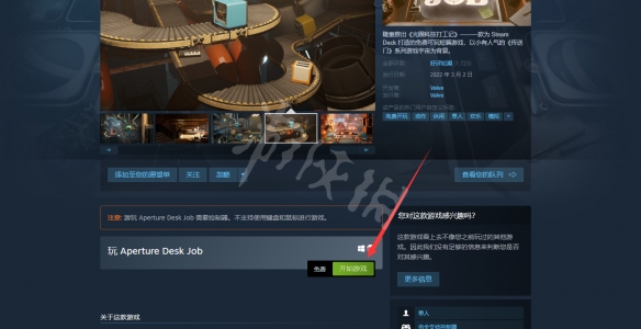 首先點擊上方的地址進入游戲steam頁面,進入後往下拉點擊下圖所示的免費遊玩按鈕。