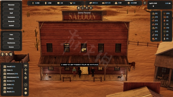 在複雜的經濟體系中茁壯成長,儲存酒、食物。研究各種各樣的飲料和食品來為顧客服務。從鎮上的民眾中僱傭和管理員工,包括酒吧老闆、廚師、服務員、妓女、荷官、鋼琴家和保鏢。幫助他們充分發揮潛力,或者解僱他們並用更有技能的人代替他們。