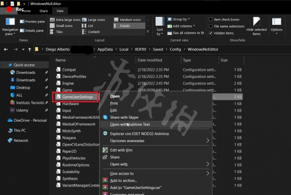 找到“GameUserSettings”,右鍵單擊並單擊編輯或使用任何文本編輯器打開。