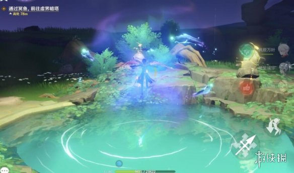 大家按照開頭我說的先去找好兩種道具淵海髓礦和常世之莢再開始這里的探索,按照指引從下圖水面升上去。