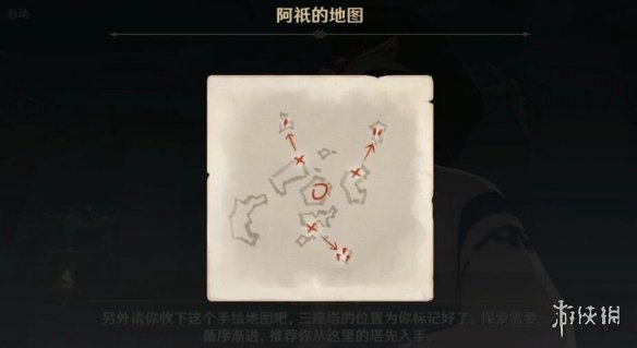 在完成上面的一系列教程之後,就來到了任務的主線,給予我們一張地圖。