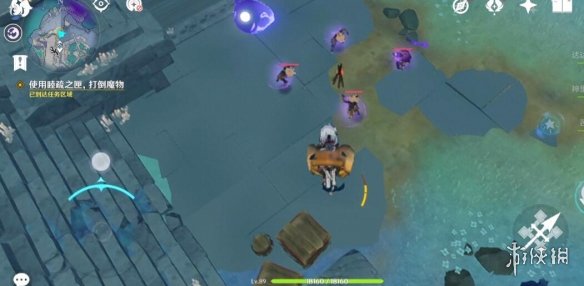 這個就不細說啦,就是帶你打打怪,打怪的時候記著帶上水屬性和冰屬性以及岩屬性的角色(大劍也可以),在打怪的時候用來破盾,暫時不慌下掉鍾離,剛開始的階段是不需要的。