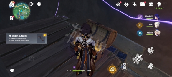 最後一把鑰匙,拿上雷種子跨過雷網之後,發現一個小牆縫內藏著木頭寶箱,打開後獲得最後一把鑰匙。