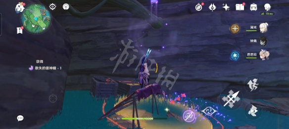 第1把鑰匙位於傳送點前面下方的斷橋處,找到一個木頭寶箱,裡面有一把鑰匙。