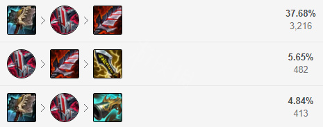 目前破艦者男槍已經趨向韓服的主流,有著極高的登場率,核心三件套為破艦者、盾弓以及飲血劍。
