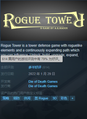 Rogue巨塔多少錢?Rogue巨塔游戲已經在steam上發售,很多小夥伴想知道這款游戲多少錢,今天為大家帶來了Rogue巨塔游戲售價分享,一起來看看吧。