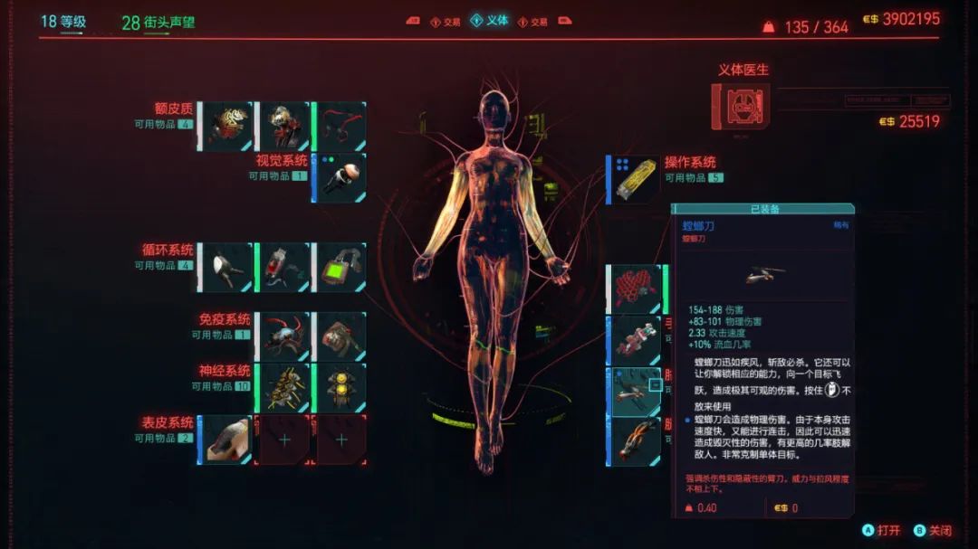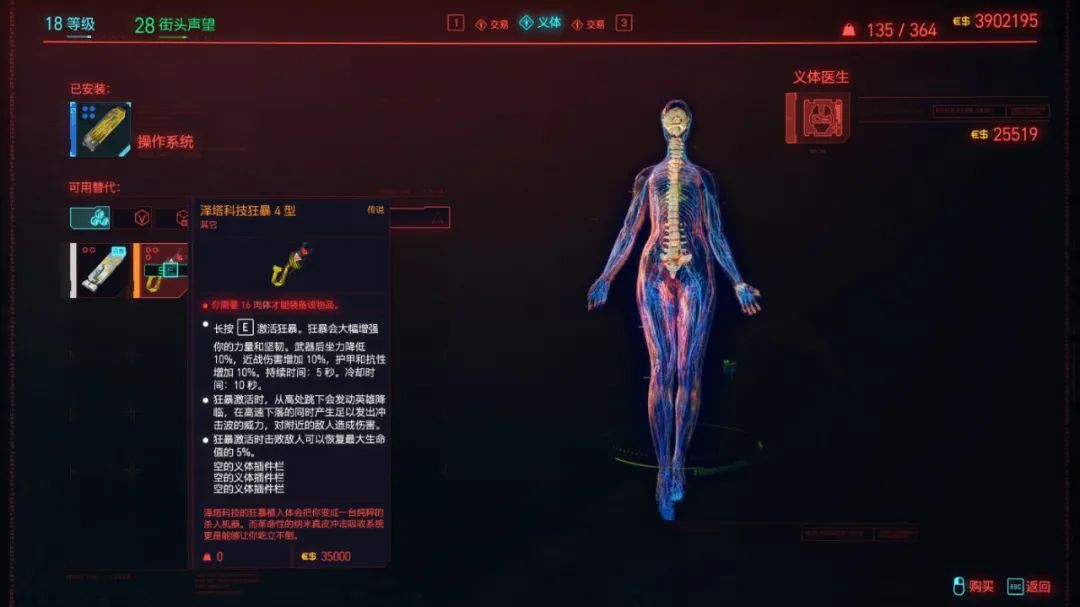 義體需要在地圖中的義體商人處進行安裝,同時玩家也可以在這裡購買各類義體,部分義體對於玩家的屬性有著一定的要求。