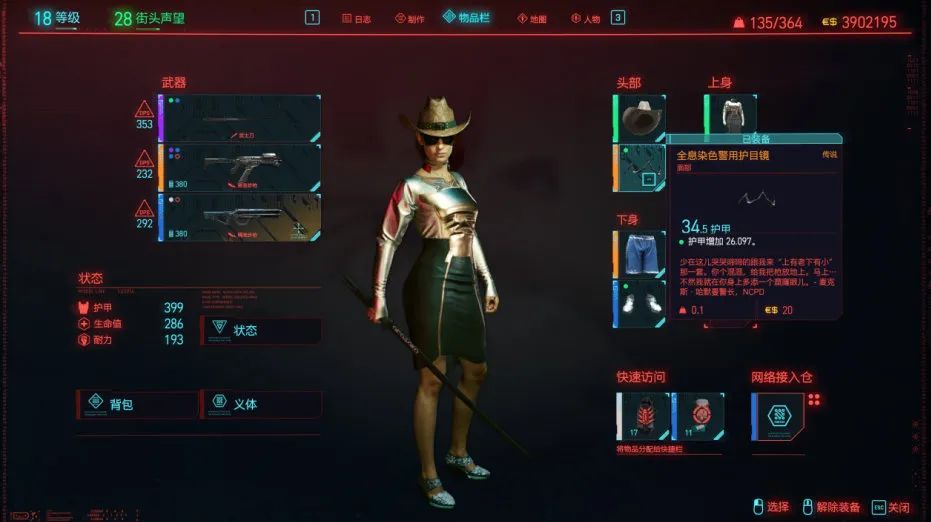 另外,或許是因為到了2077年,很多衣服看上去很單薄,護甲卻很高,或許這就是科技的力量吧。