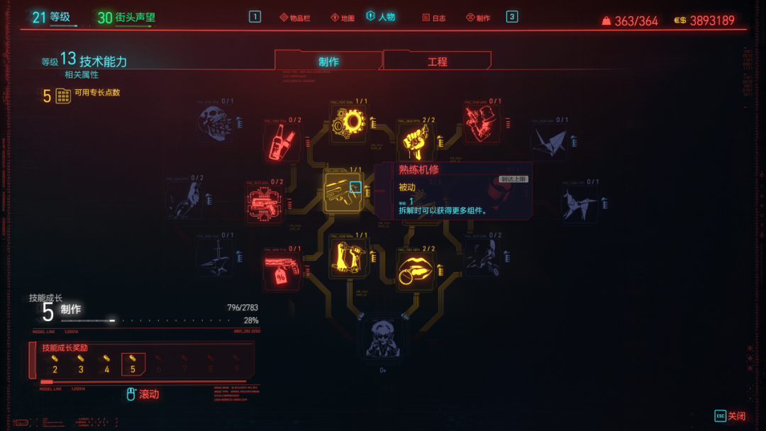 必需技能:技術能力·製作 熟練機修(效果:拆解時可以獲得更多零件。)