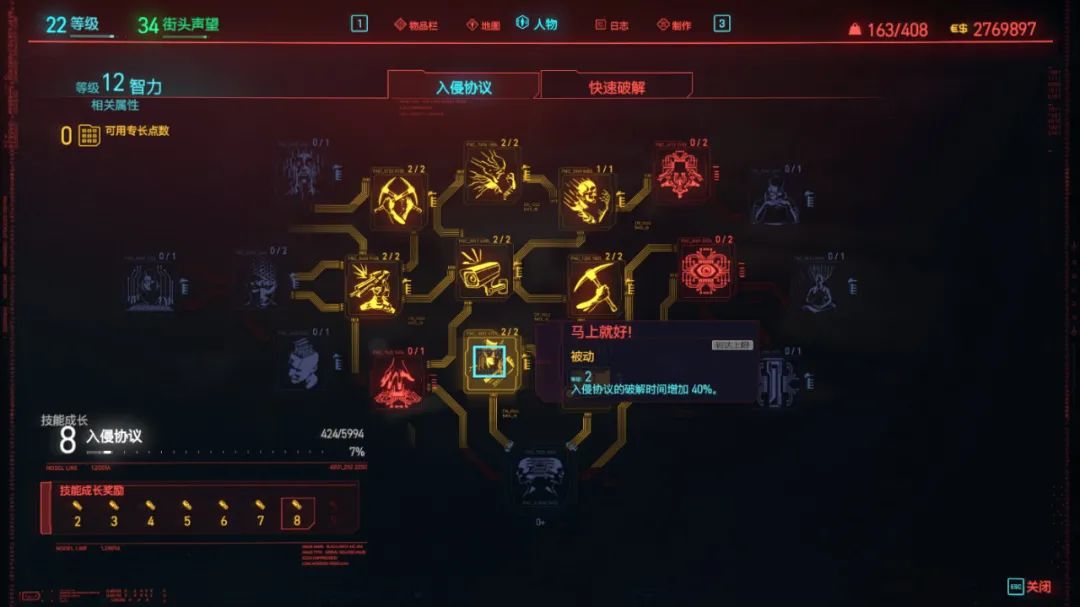 智力升級時:・網路接入倉RAM容量增加4%・快速破解造成的傷害增加0.5%・快速破解的持續傷害增加1%