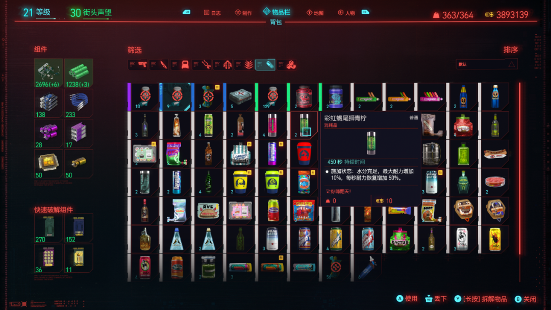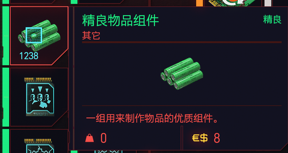 刷錢原理:購買售價10歐元的飲料,學會「熟練機修」後,拆解一次可獲得三個精良物品組件和六個普通物品組件,去商店出售可以獲得3×8+6×5=54歐元,一瓶飲料凈賺44歐元。遊戲中基本所有售價10歐元的飲料均可以進行拆解。