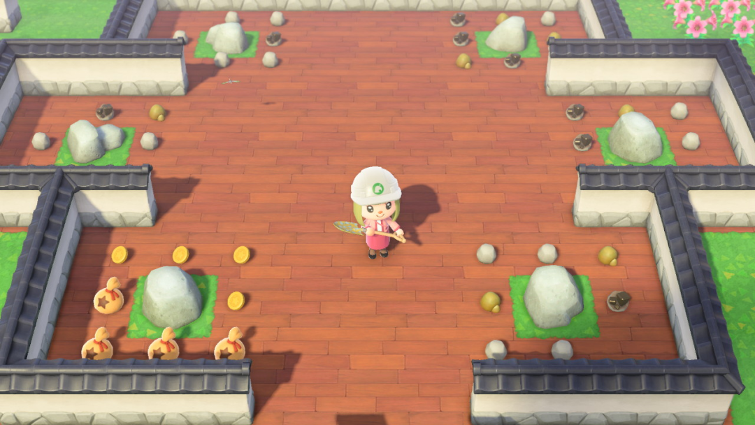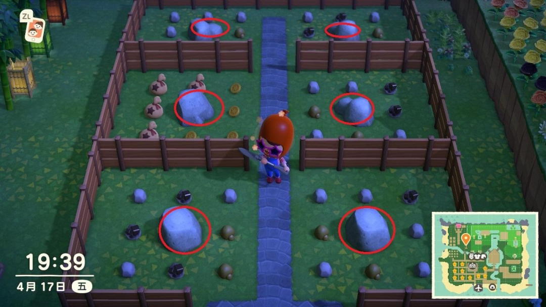 首頁 攻略 《集合啦!動物森友會》連石頭的位置都控制不好,還怎麼玩? 2022-07-01 動森都發售一個月了,相信大家都知道每天挖石頭的重要性。可是每天都得挖兩個洞擋住,其實有點煩。要不然石頭的位置長到奇怪的地方那可太影響美觀了。所以今天小月就來和小夥伴聊聊如何準確控制石頭的刷新位置這個歷史難題,石頭石頭隨我心意吧。首先,這將會花費較多時間,當然也需要耐心看完以下的內容才完成了第一步。先來了解一下石頭的機制,每個島上都有6顆石頭。吃水果敲爆石頭,不論敲爆多少顆,明天都只會長出1顆。簡單來說,只要你敲爆石頭後,把島上所有位置都用東西填滿,再留空一格 ,就能將石頭長到指定位置了 。但實際上,在某些條件下,石頭是會長不出來的,所以其實這些位置是不用特意去找東西擋的。只要利用這些條件,就可以更有效率,不用把全島都填滿東西。在河道旁的一排,不會長石頭。靠近落差的上下一排,都不會長石頭。建築物旁的一圈都不會長。鋪了木/石/磚地板,不會長石頭,但泥地/沙地會長。沙灘不會長石頭,直接無視即可。長有雜草/花朵,放有道具(直接放地上)/金錢的那一格,不會長,但隻影響該格,周圍的格子仍會長。將傢具(包括欄桿)展示出來,樹木/竹子/石頭的一周不會長。呼~那麼,條件都說完了。第一步就是先找好合適的地方,用欄桿圍起來。如果像圖中的排法,靠近欄桿的位置不會長石頭的關係,靠近路那一格位置放一下東西。石頭長出來的話必定是紅圈那6個位置。第二步,用欄桿把島上的位置都擋起來,利用上面說過的特性就可以像下圖一樣,利用4格欄桿就擋掉4*9=36格了(圖中的X只為示意,實際上不用鋪),選欄桿是因為最便宜,而且能簡單量產,用木就能做出一堆。第三步,吃水果把石頭敲爆,一天敲爆一顆就好,多敲爆明天也只能長一顆。開時光機的可以敲爆六顆,直接跳六天。最後,確認石頭生成位置,有長到想要的位置就恭喜你成功了,終於掌握控石術了。此外以上只是簡單的方法提供思路,想要做景觀的小夥伴,前期可能要好好規劃一下,才能做成比較理想的效果。