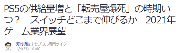 今日,日媒全文刊發了日本資深遊戲界評論人河村鳴紘的文章,題名為《 PS5增量、黃牛暴死究竟在何時?Switch還能走多遠?2021年遊戲業界展望》。河村鳴紘在文章中表示,PS5成為很多核心玩家渴望的到的主機,但大多數人都買不到。Switch的旺盛勢頭依然不減,《怪物獵人:崛起》、《塞爾達傳說:荒野之息2》值得期待。