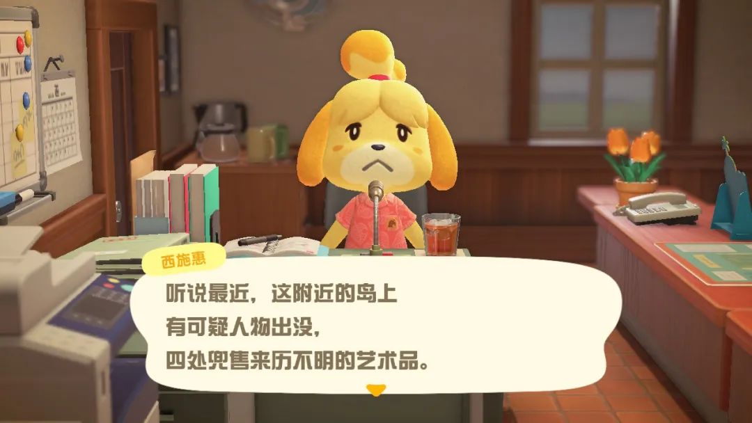 在更新版本之後,去博物館與傅達對話,會得知傅達有想開藝術品展覽館的想法。與傅達對話的第二天,西施惠會在廣播中提到附近島上有可疑人物出沒,這時就是狐利來到島上了。