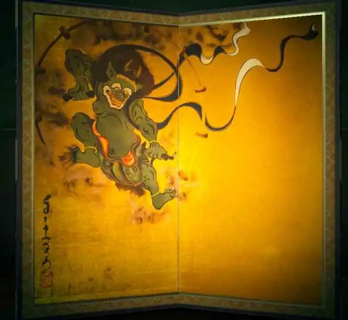 3、俵屋宗達《風神雷神圖》(風神側) | 真:風神是綠色 | 假:風神是白色