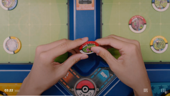 隨著視頻一個精妙的翻轉過場,計步器變成了寶可夢街機《Battrio》的圓盤卡片。這是寶可夢的第一款街機遊戲,也為如今國內能玩到的《加傲樂》奠定了基礎。