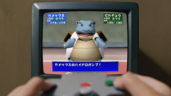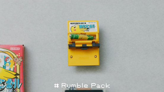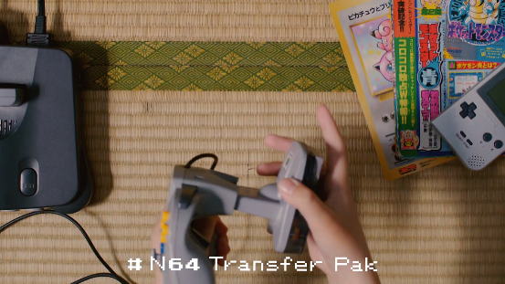 而這個可以插著GB卡帶,再插入N64手柄的奇怪外設,便是Transfer Pak。當你遊玩N64遊戲《寶可夢競技場》時,可以讀取GB寶可夢的存檔數據,使用GB遊戲卡里的寶可夢,在電視機上以3D畫面進行對戰。