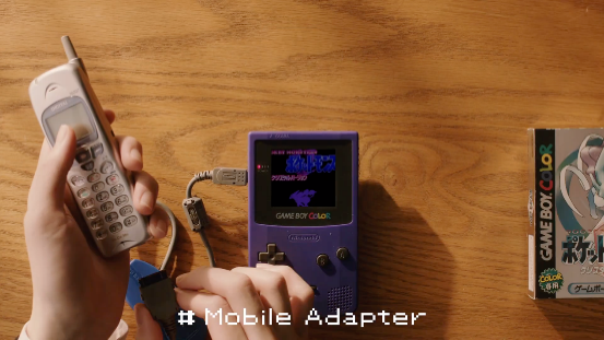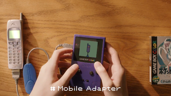 視頻中的GBC通過聯機線連到了一個外設,而後又和手機相連。這是當年在日本推出的一項服務,只有特定的手機才可以連接。