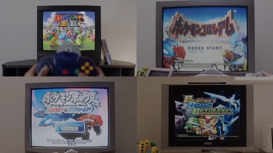 電視機旁的四盒卡帶,分別是《紅藍寶石》,GBA的《彈珠檯》,以及NGC的《紅藍寶石盒子》。這個盒子就和如今的《寶可夢銀行》《寶可夢HOME》一樣,在那個網路並不發達的年代,我們可以將GBA上抓到的寶可夢,存放到NGC的記憶卡中保存。