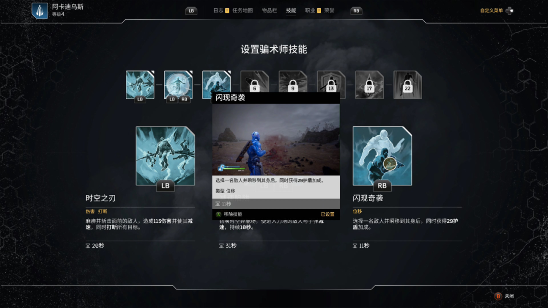 角色的技能會隨著等級的提高而解鎖 ,角色最多可以同時攜帶三種技能,技能具體效果,CD時間等信息可以在設置界面進行查看。在試玩版中還可以看到職業加點系統,從效果來看它們可以為我們的戰鬥提供不小的輔助效果。