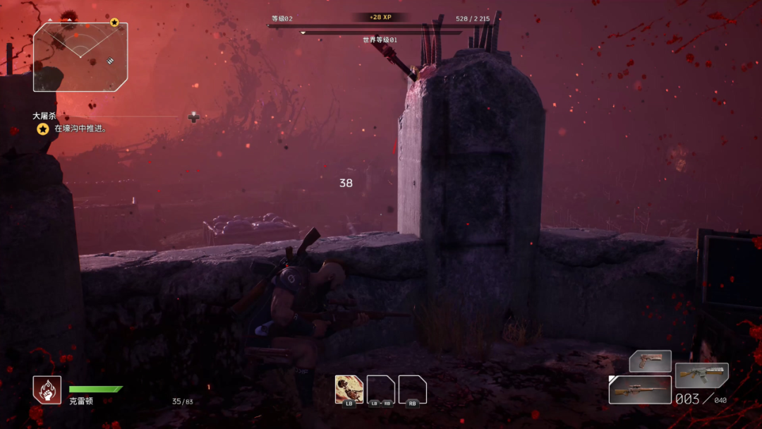 如在下圖為試玩版中的一個場景,在本場戰鬥中會在遠處仍有五六個遠程敵人時刷出三個近戰型敵人快速接近我們,將我們逼出掩體,暴露在遠處敵人的槍口下。在筆者用火法師來推進這一關卡時被「滿頭大漢」搞的痛不欲生,而使用騙術師來挑戰本場景時就是光刃無雙。